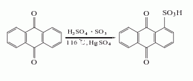 2.蒽醌磺酸鹽氨解法 蒽醌與發(fā)煙在汞存在下反應(yīng),生成蒽醌-1-磺酸,經(jīng)氨水中和,再置換成鈉鹽,然后在間硝基磺酸鈉催化下氨解生成1-氨基蒽醌,精制后得成品。